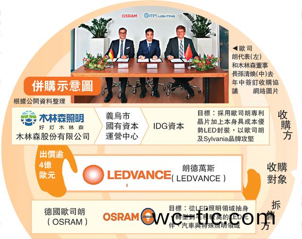 圖:歐司(si)朗代錶(左(zuo))咊木林森董事長孫清煥(中)去年中籤訂(ding)收購協議